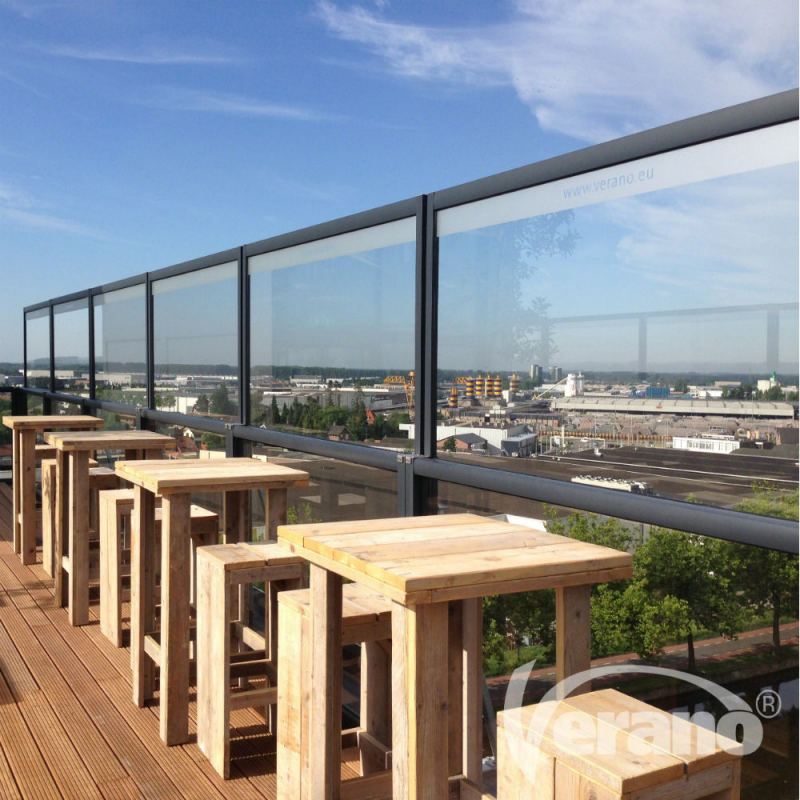 Het windscherm heeft en maximale breedte van 3 meter en 2,5 meter hoogte. Het glazen scherm is te koppelen waardoor u zelf de afscheiding kan bepalen. Door op uw terras verschillende schermen te plaatsen creëert u uw eigen privé omgeving. Deze schermen zijn echter ook geschikt voor het afdichten van een terrasoverkapping. Het is mogelijk om beide delen van volkern (trespa) te voorzien. Het scherm wordt dan met een plaat op de grond gemonteerd.
